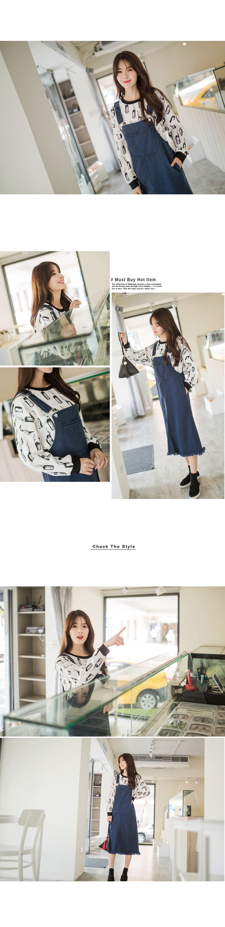 我不是很會穿搭衣服。我想找一件衣服滿版打火機印花羅紋滾邊圓領上衣.2色
