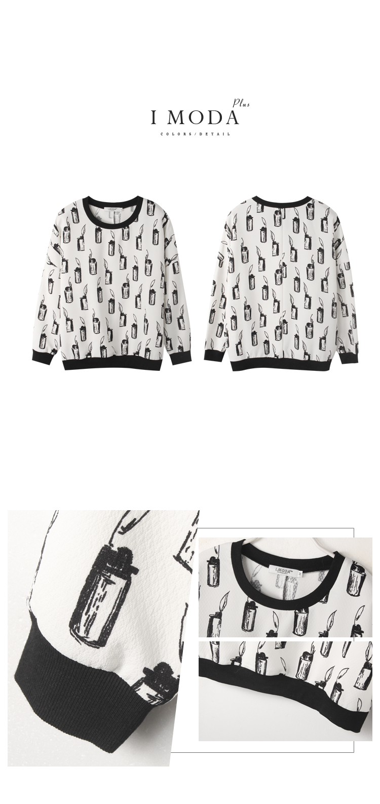 滿版打火機印花羅紋滾邊圓領上衣.2色